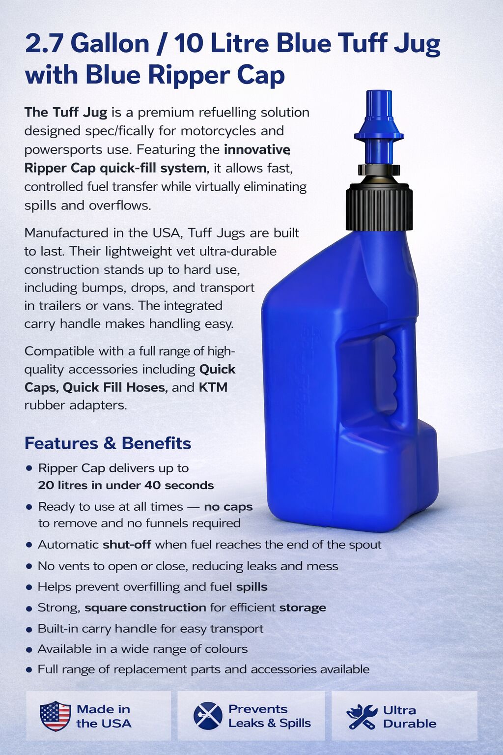 Tuff Jug - 2.7 gal/10 Litre Blue with Blue Ripper Cap